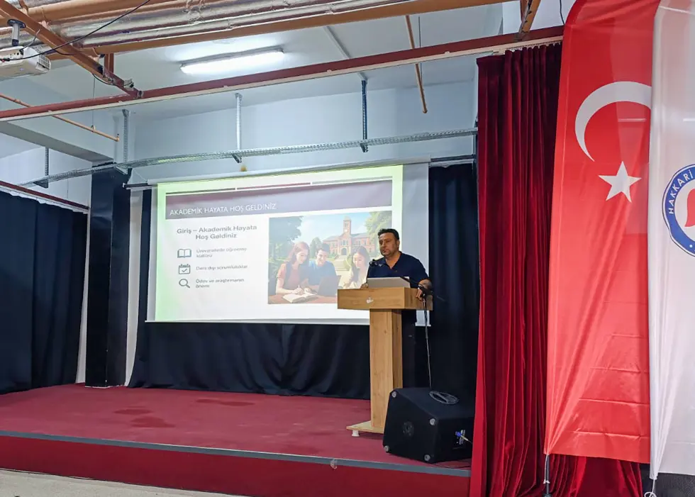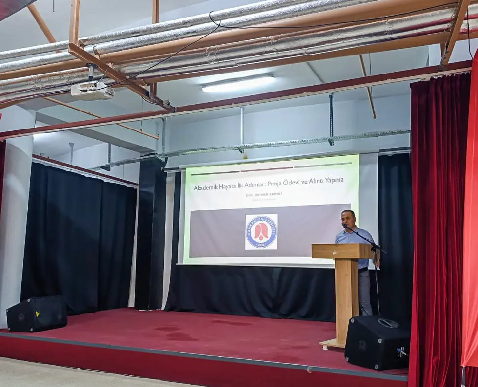 Merkezi Derslikler Öğrenci Toplulukları Salonu'nda gerçekleştirilen etkinlik, Dekanımız Prof. Dr. Cemal Ulutaş’ın açılış konuşmasıyla başladı. Ardından, Fakültemiz Eğitim Bilimleri Bölümü Başkanı Doç. Dr. Halil Kamışlı ve Güzel Sanatlar Eğitimi Bölümü Başkanı Dr. Öğr. Üyesi Ahmet Dönger, öğrencilere "akademik süreçler ve sistemler" ile "proje ve ödev hazırlama süreci" konularında bilgilendirme sunumları yaptı.