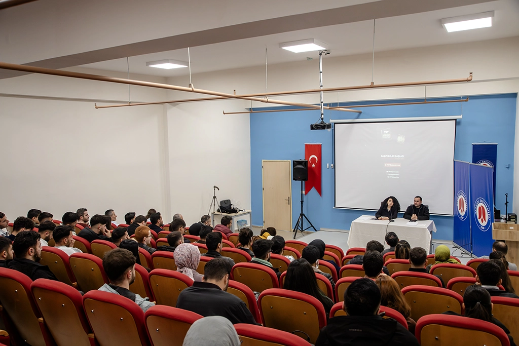 Üniversitemiz Merkezi Derslikler Muhammed Selim Seven Konferans Salonu’nda gerçekleştirilen programda, 17. TRT Uluslararası Belgesel Ödülleri İzleyici Koordinatörleri Efsun Korman ve Yiğithan Dinçol, belgeselcilik deneyimlerini öğrencilerimizle paylaştı.