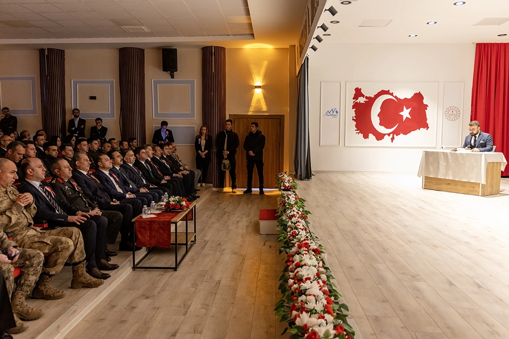 Şehit Öğretmen Mücahit Tunç Konferans Salonu’nda gerçekleştirilen programa; Hakkari Valisi İbrahim Taşyapan, Hakkari Dağ ve Komando Tugay Komutan Vekili Tuğgeneral Mustafa Büyükköroğlu, Cumhuriyet Başsavcısı Burak Hazinedaroğlu, Hakkari 1. İdare Mahkemesi Başkanı Erkan Seydibey, Vali Yardımcısı Recep Gündüz, İl Jandarma Komutanı Tuğgeneral Cafer Öz, İl Emniyet Müdürü Attila Ayata, kurum amirleri, siyasi parti ve sivil toplum kuruluşlarının temsilcileri ile çok sayıda öğrenci ve öğretmen katıldı.