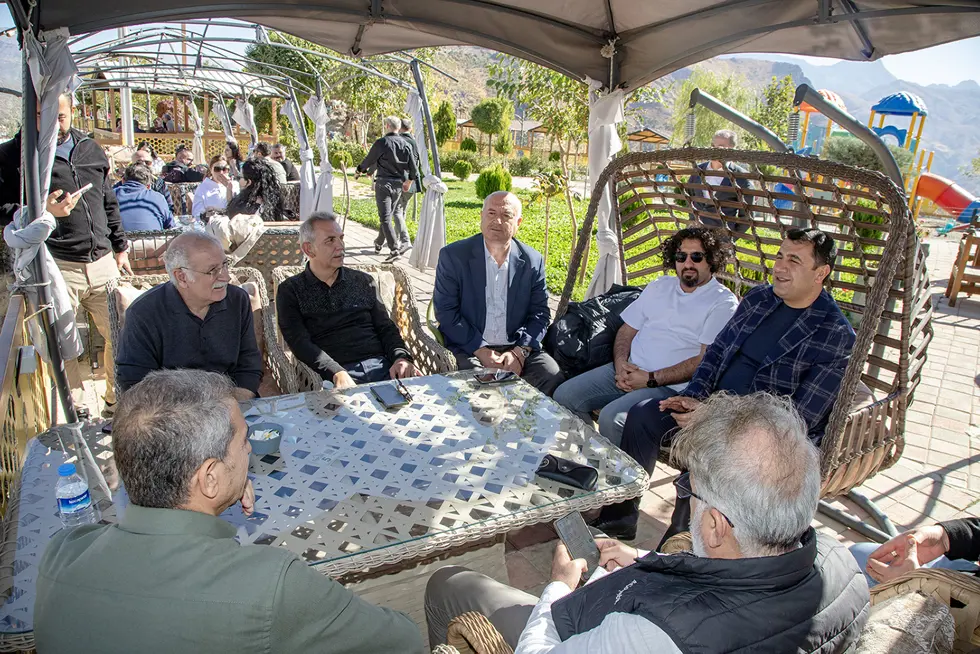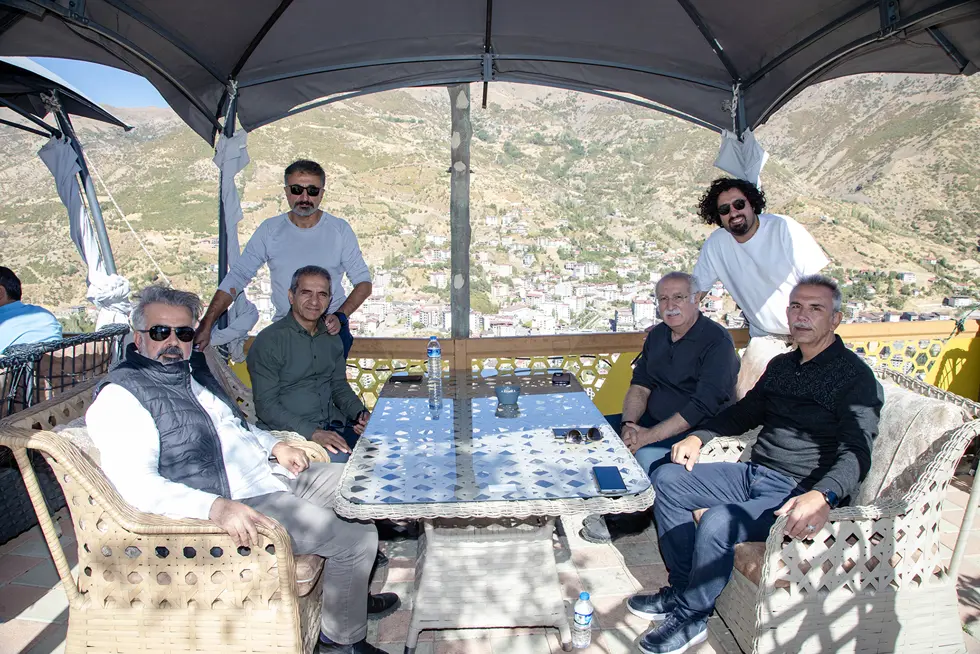 Şemdinli Belediye Başkanı Fahri Şakar, Rektör Yardımcısı Prof. Dr. Hayati Çavuş, Genel Sekreterimiz Doç. Dr. Saim Gündoğan ve kongre düzenleme kurulu üyelerini seyir tepesinde ağırlayarak, ilçenin tarihi ve kültürel değerleri hakkında bilgilendirmelerde bulundu.
