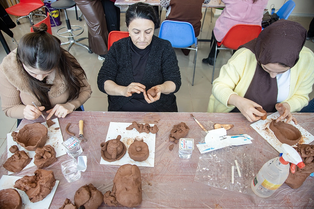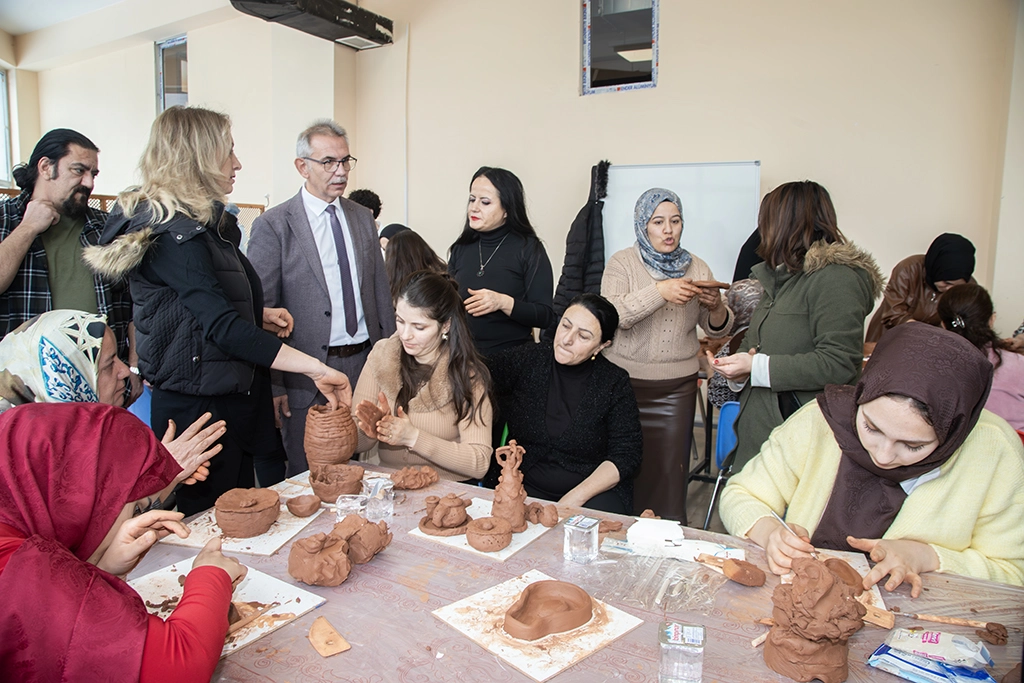 Etkinlik kapsamında ADEM’e kayıtlı 30 kadın, seramik ve kil ile şekillendirme teknikleri üzerine uygulamalı eğitim aldı. Akademisyenlerimiz eşliğinde gerçekleştirilen atölye çalışmalarında katılımcılar, kilin yoğrulmasından form verilmesine kadar sürecin tüm aşamalarını deneyimleme fırsatı buldu. Ortaya çıkan çalışmalar, kadınların yaratıcılıklarını ve sanatsal ifade becerilerini ortaya koydu.