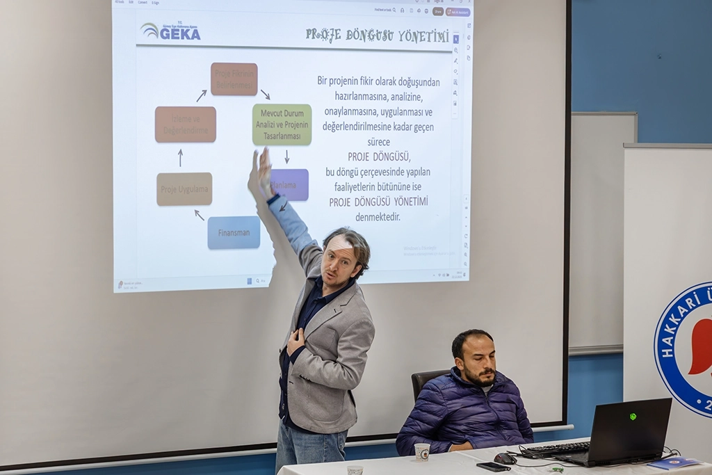 Eğitim programında; Üniversitemiz Proje Koordinasyon Uygulama ve Araştırma Merkezi Müdürü Doç. Dr. Ali Avcı ile Yüksekova Meslek Yüksekokulu Öğr. Gör. Dr. Alican Gözcü tarafından, proje mantığının doğru anlaşılması, proje yazım sürecinde ihtiyaç duyulan bilgi ve tecrübenin kazandırılması, proje kültürünün üniversite genelinde yaygınlaştırılması ve akademik ile idari personelin proje yazabilme becerilerinin geliştirilmesine yönelik kapsamlı bir eğitim verildi.