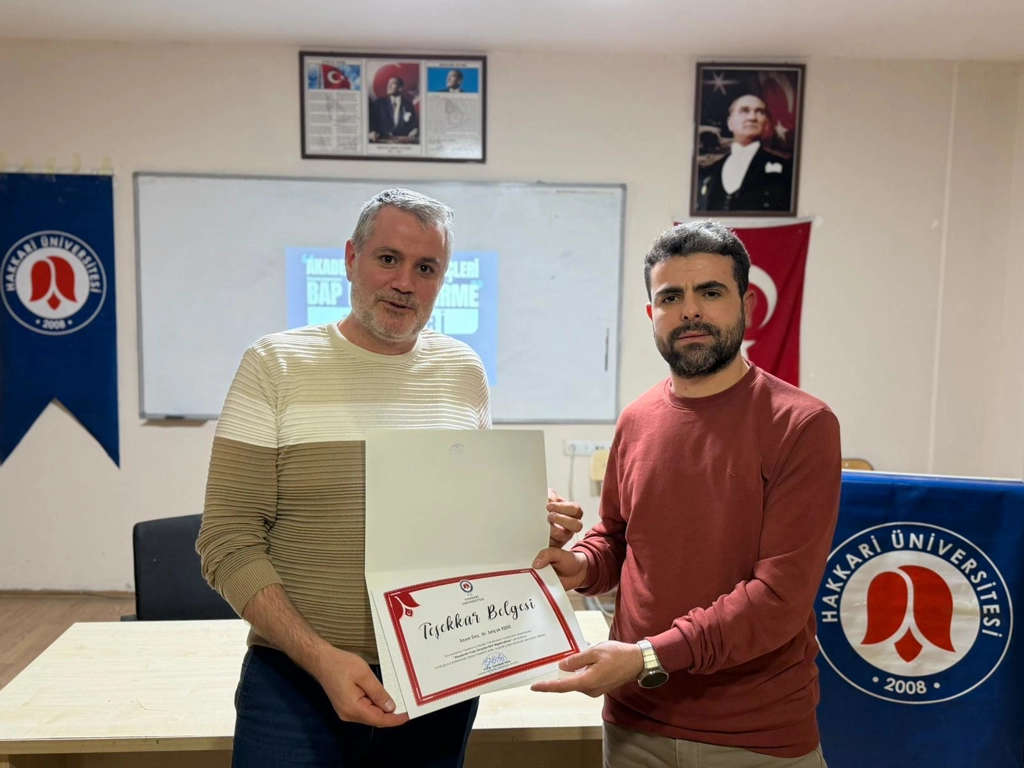 Programın sonunda, Yüksekova Meslek Yüksekokulu Müdür Yardımcısı Dr. Öğr. Üyesi Tayfun ÇETİN, katkılarından dolayı Doç. Dr. Selçuk EŞSİZ’e bir teşekkür belgesi takdim etti. Seminer, katılımcıların proje süreçlerine dair merak ettikleri soruların yanıtlandığı interaktif bölümün ardından sona erdi.