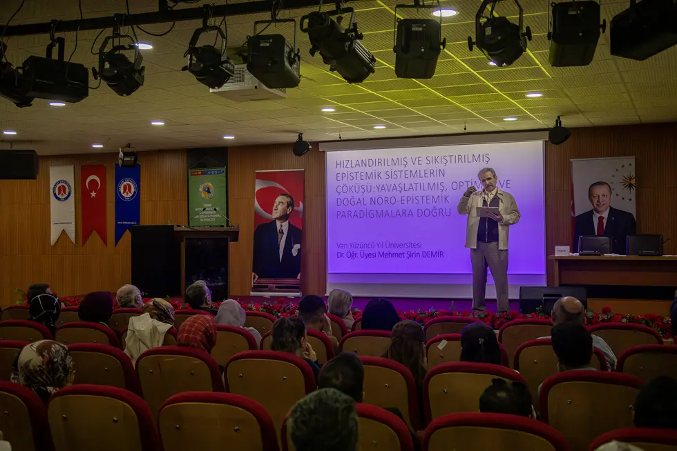 Günün ilk oturumu, Nebraska Kearney Üniversitesi’nden Doç. Dr. Heather R. Kennedy’nin video gösterimi aracılığıyla sunduğu “Aile Hayatı: Belirsiz Kayıp Teorisine Giriş” başlıklı sunumla başladı. Ardından, Van Yüzüncü Yıl Üniversitesi Öğretim Üyesi Dr. Mehmet Şirin Demir, “Hızlandırılmış ve Sıkıştırılmış Epistemik Sistemlerin Çöküşü: Yavaşlatılmış, Optimal ve Doğal Nöro-Epistemik Paradigmalara Doğru” konulu konferansında bilgi üretimi süreçlerine ilişkin farklı paradigmaları ele alarak katılımcılara kapsamlı bilgiler aktardı.
