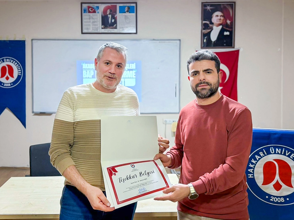 Seminer, soru-cevap bölümünün ardından, Yüksekova Meslek Yüksekokulu Müdür Yardımcısı Dr. Öğr. Üyesi Tayfun Çetin tarafından Doç. Dr. Selçuk Eşsiz’e teşekkür belgesinin takdim edilmesiyle sona erdi.