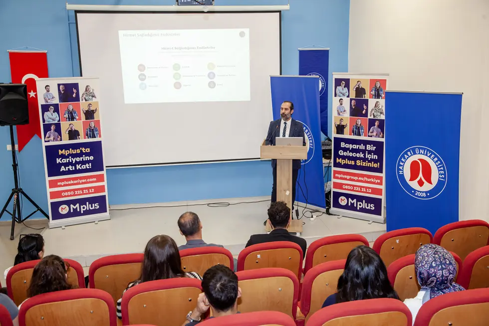 Konferansta, Mplus Türkiye Dış Kaynak Hizmetleri firması yöneticileri; şirketin faaliyet alanları, kariyer olanakları, iş dünyasında başarı için gerekli yetkinlikler ve etkili mülakat teknikleri hakkında öğrencilerimize değerli bilgiler ve öneriler sundular.