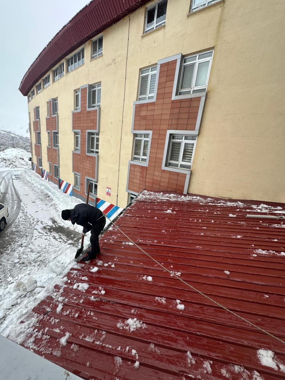 İlimizde etkili olan yoğun kar yağışının ardından; Zeynelbey Yerleşkesi, lojmanlar ve sosyal tesislerimizde ulaşımın aksamaması için yollar hızla temizlenerek kullanıma açılmıştır. İdari ve Mali İşler Daire Başkanlığımızca yürütülen çalışmalar kapsamında, olası riskleri önlemek adına çatılardaki kar kütleleri ve buz sarkıtları temizlenmiş; güvenli bir kampüs ortamı sağlanmıştır. Ekiplerimiz, personel ve öğrencilerimizin mağduriyet yaşamaması için saha çalışmalarına gece gündüz demeden devam etmektedir.
